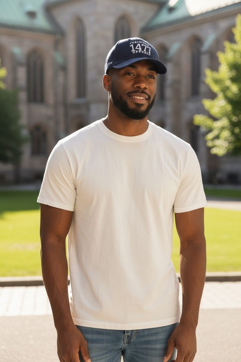 Representera Juridicum i denna stilrena och bekväma keps i marinblå med benvitt tryck. 100% bomull, one size.